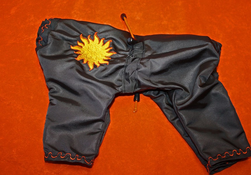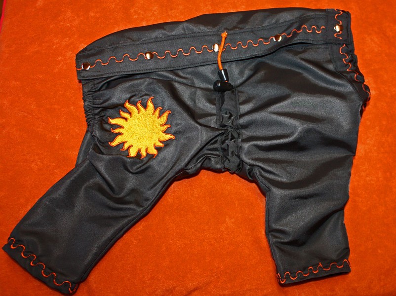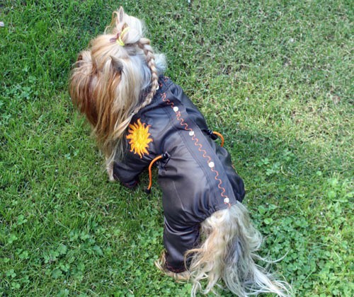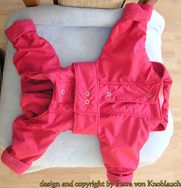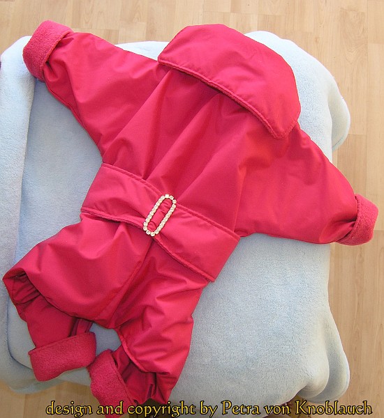 Einteilige oder zweiteilige Anzüge für jede Witterung. Materialien, Farben und Applikationen sind wie bei den Mäntelchen frei kombinierbar.