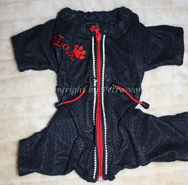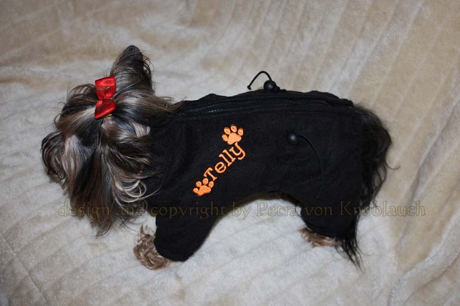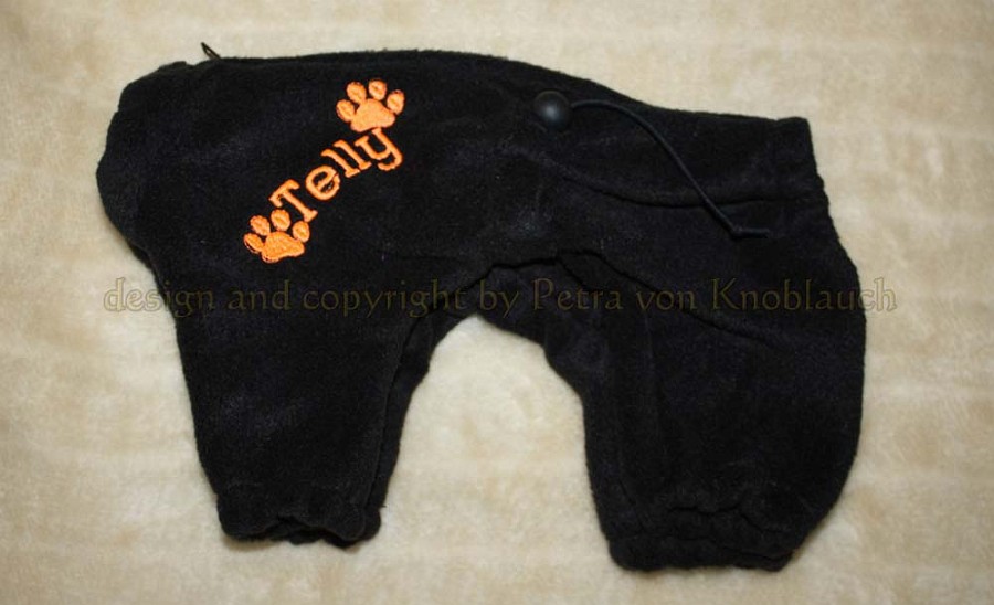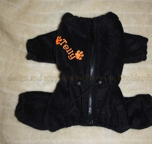 An-003a Schwarzer Overall aus Antipillingfleece - individell bestickt - wird auf dem Rücken mit einem teilbaren Reißverschluß geschlossen