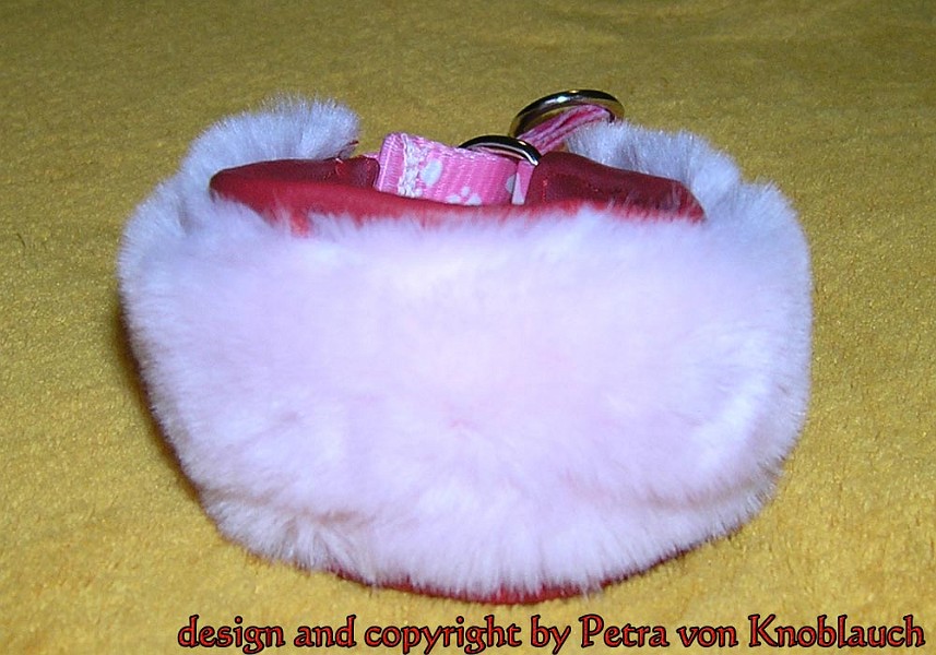 Hb-0004 Zugstopphalsband aus rotem Nappaleder -außen mit exclusivem rosafarbenem Kunstfell besetzt