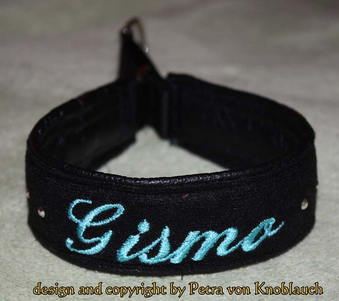 Hier meine Modelle von Halsbändern. Die Lausbuben lieben diese Art der Halsbänder wegen des problemlosen Anlegens und der guten Trageeigenschaften.