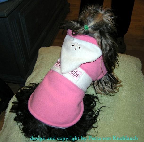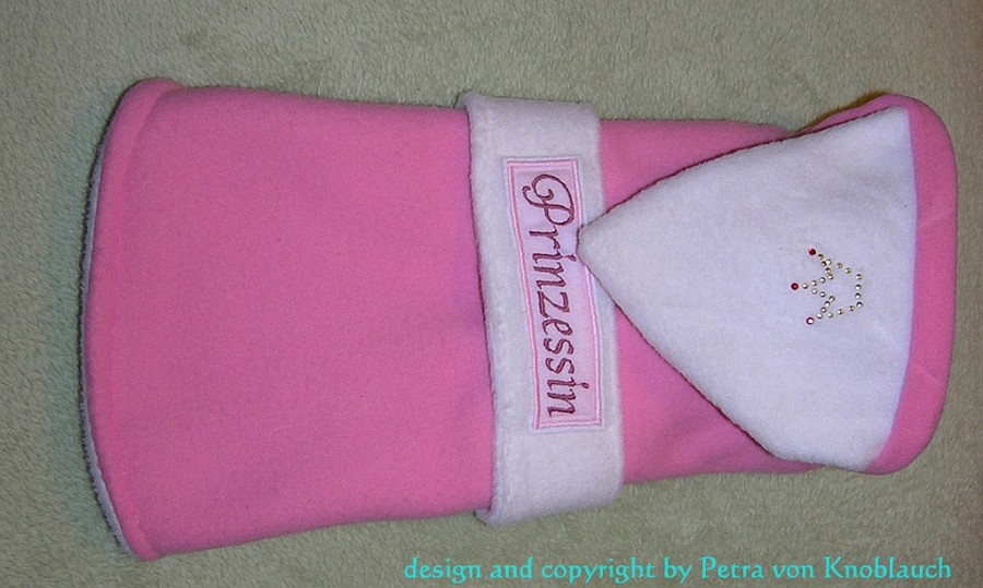 MF-006 "Polarfleecemäntelchen mit Swarovski-Kronen-Applikation auf der Kapuze Innen mit superweichem Polarfleece gefüttert Auf dem Gürtel ist der Schriftzug ""Prinzessin"" als Applikation aufgebracht."
