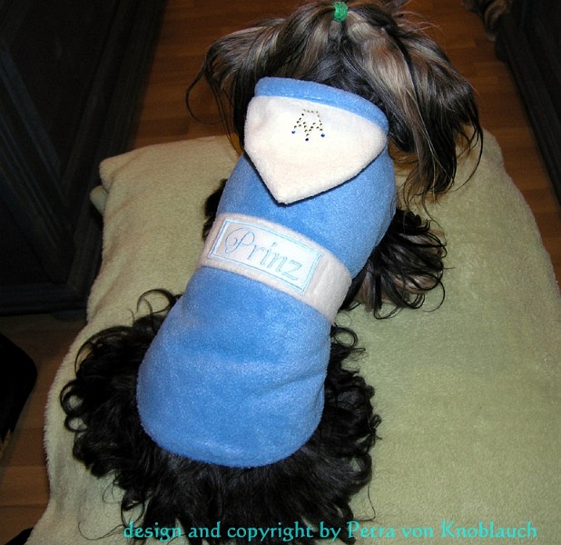 MF-009 exclusives blau/weißes Hundemäntelchen für ihren kleinen Prinzen