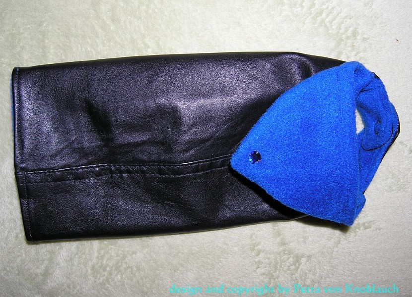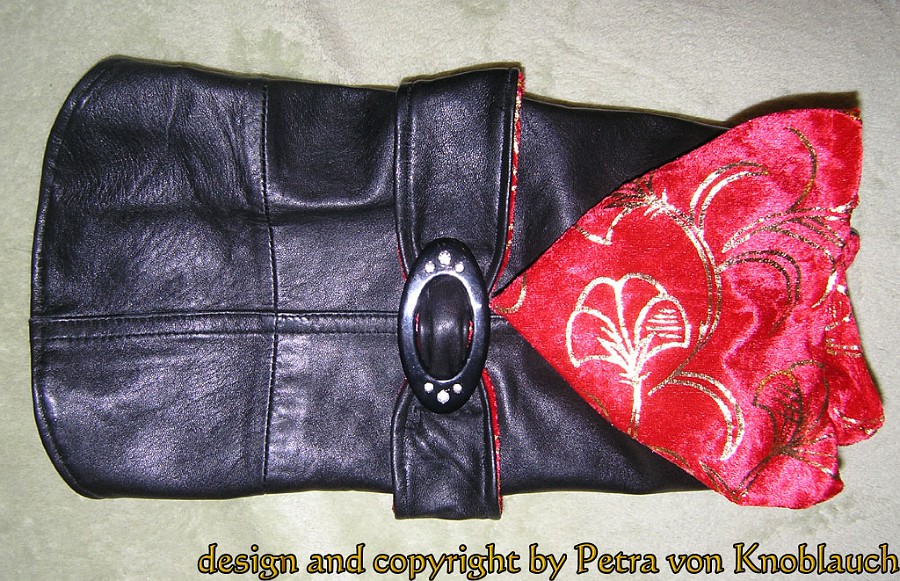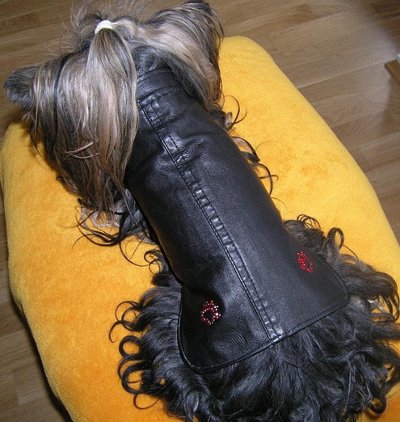 Diese Mäntelchen fertige ich aus hochwertigem Nappaleder oder aus weichem Kunstleder. Sie werden schnell und bequem durch Druckknöpfe oder einfach durch Klettband am Gürtel und Kragen geschlossen.